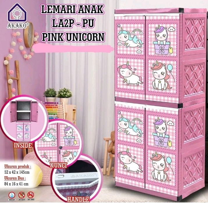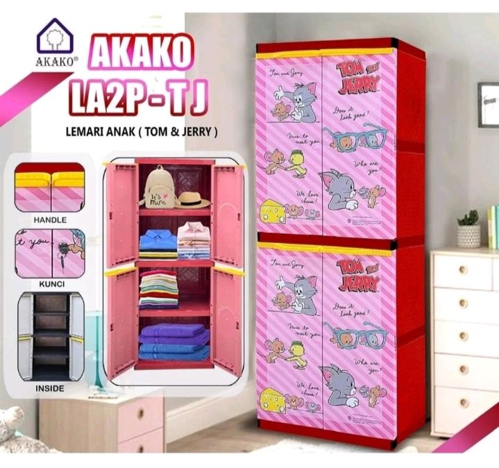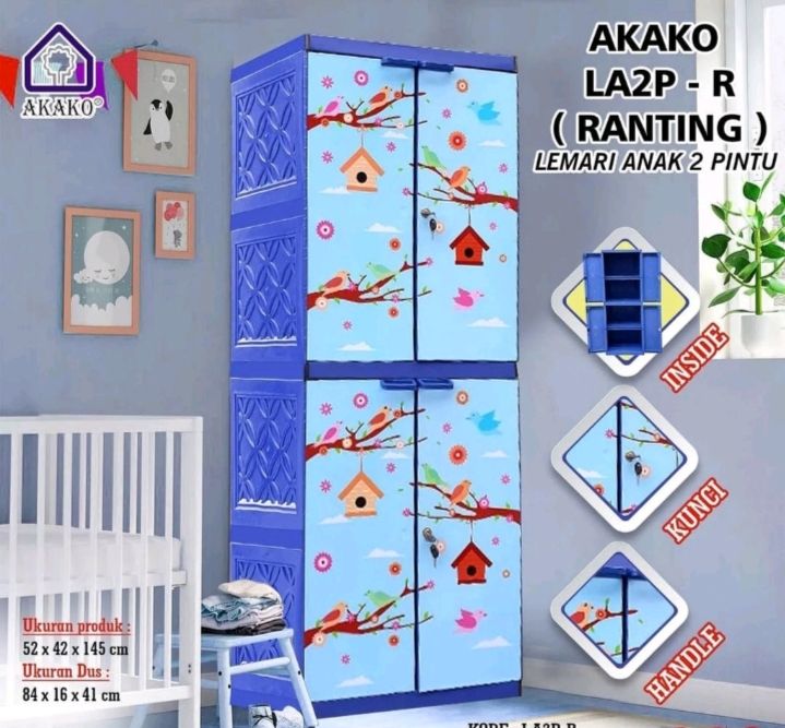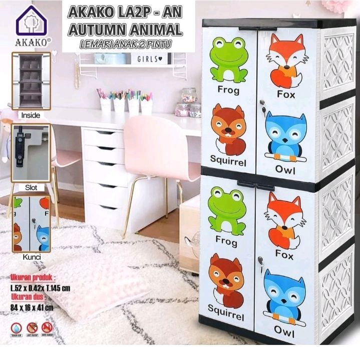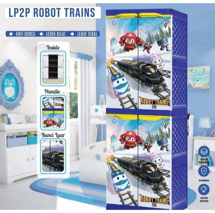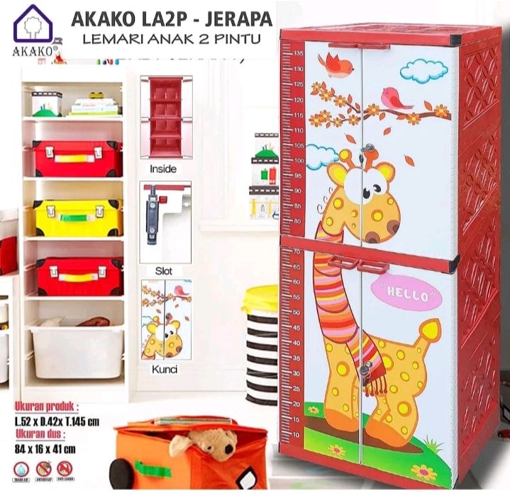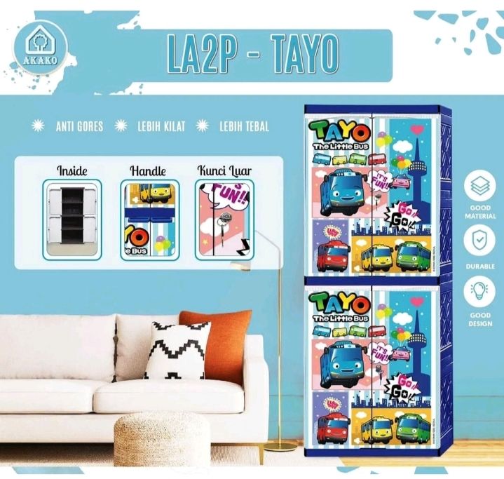(GRATIS ONGKIR) AKAKO - Lemari Plastik anak 2 pintu LA2P Motif Printing Robot Trains Dan New Tayo Akako Promo