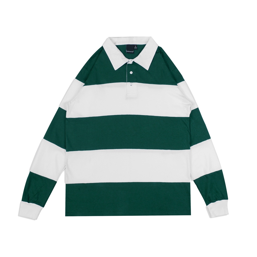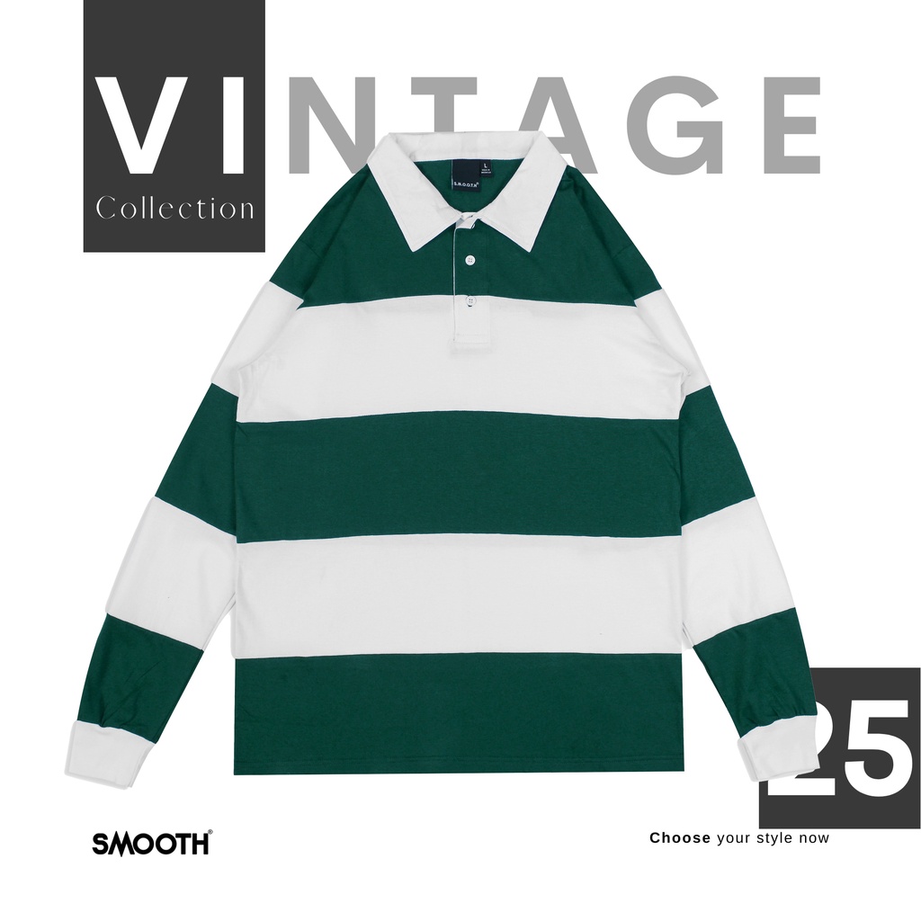 SMOOTH BASIC VINTAGE RUGBY POLO SHIRT - GREEN WHITE GREEN