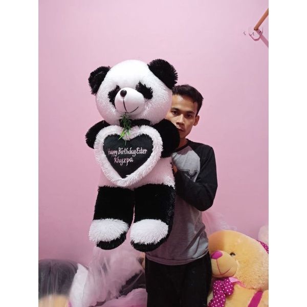 Boneka panda hitam putih 65 cm bisa ukir nama request tulisan ucapan kado ulang tahun wisuda pacar anniversary