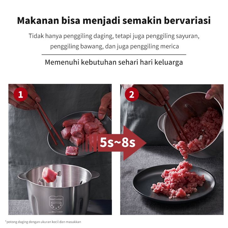 KADONIO Blender Daging Chopper Stainless 2L Penggiling Daging Multifungsi Meat Grinder KL-FB01