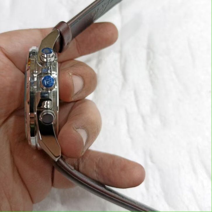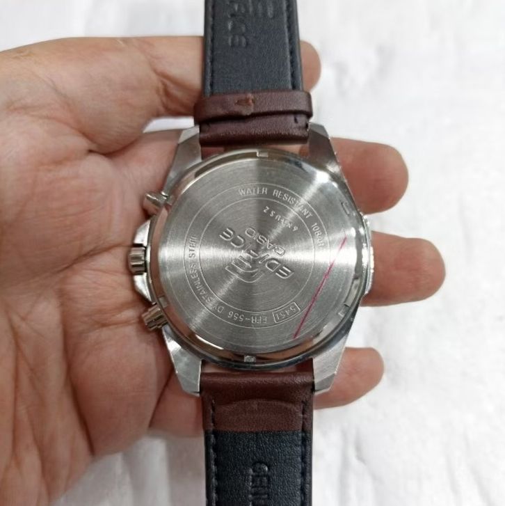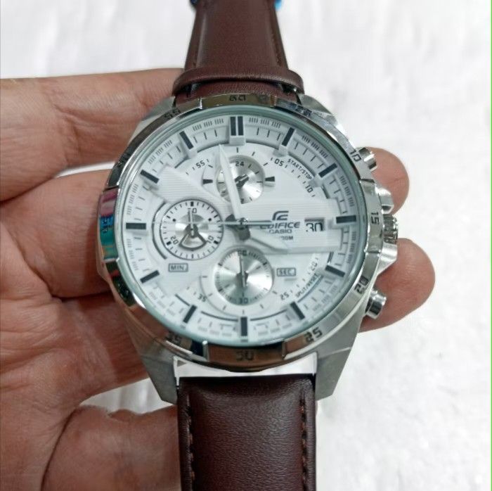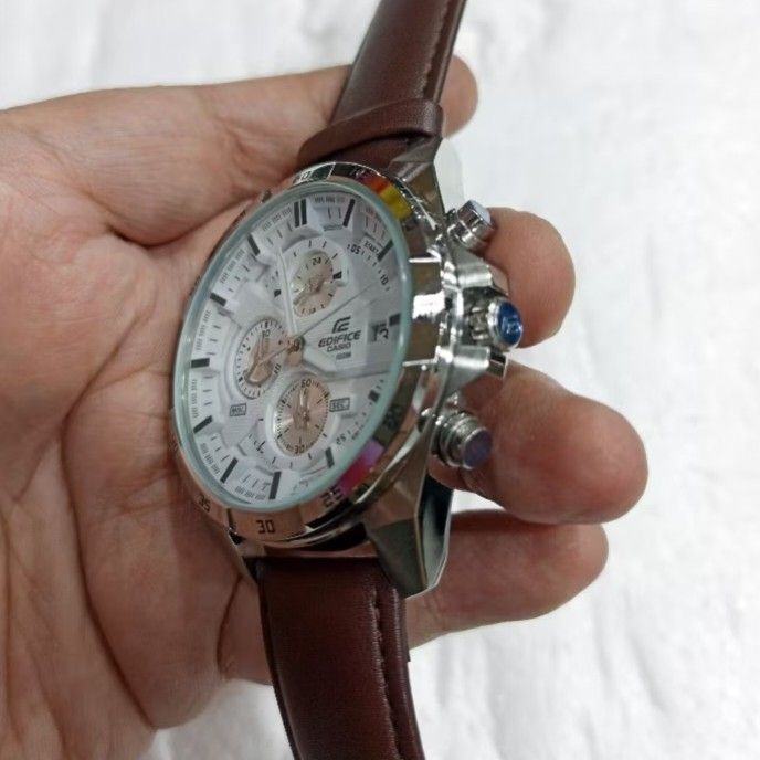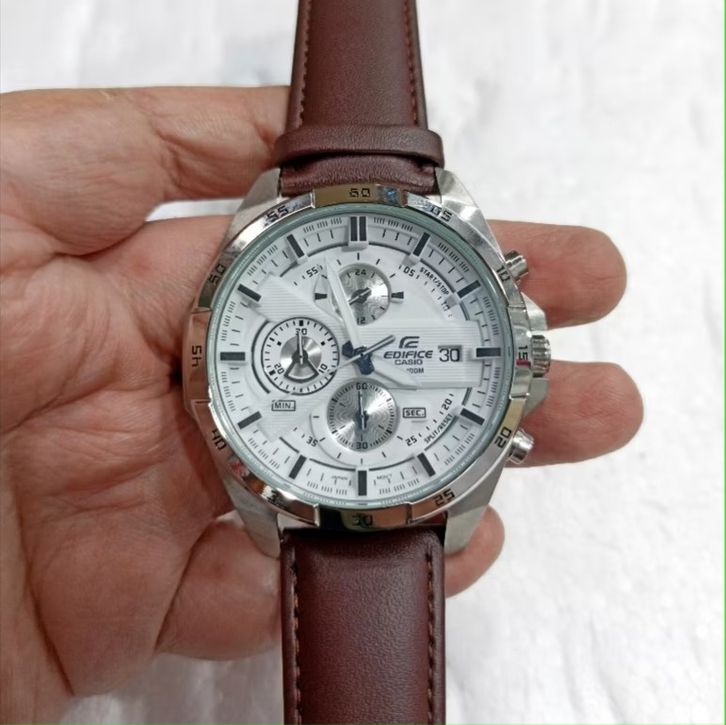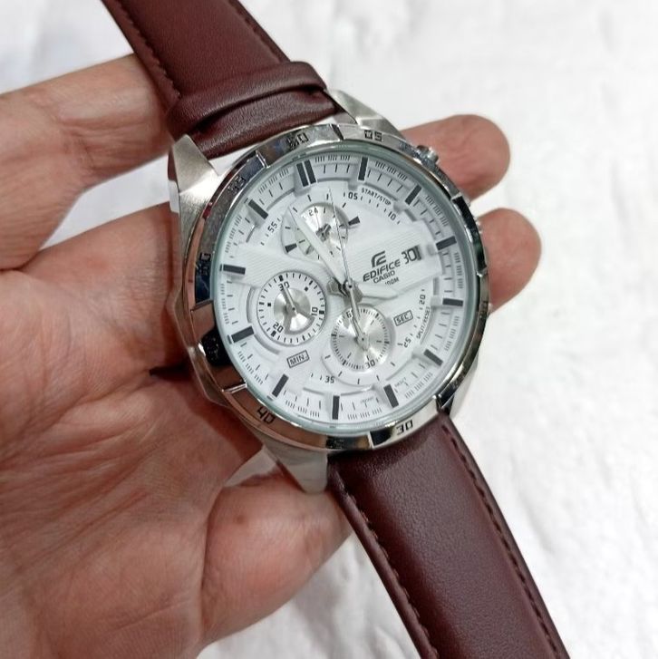 JAM TANGAN PRIA CASIO EDIFICE EFR-556 SILVER DIAL WHITE STRAP BROWN ORIGINAL-FREE ONGKIR