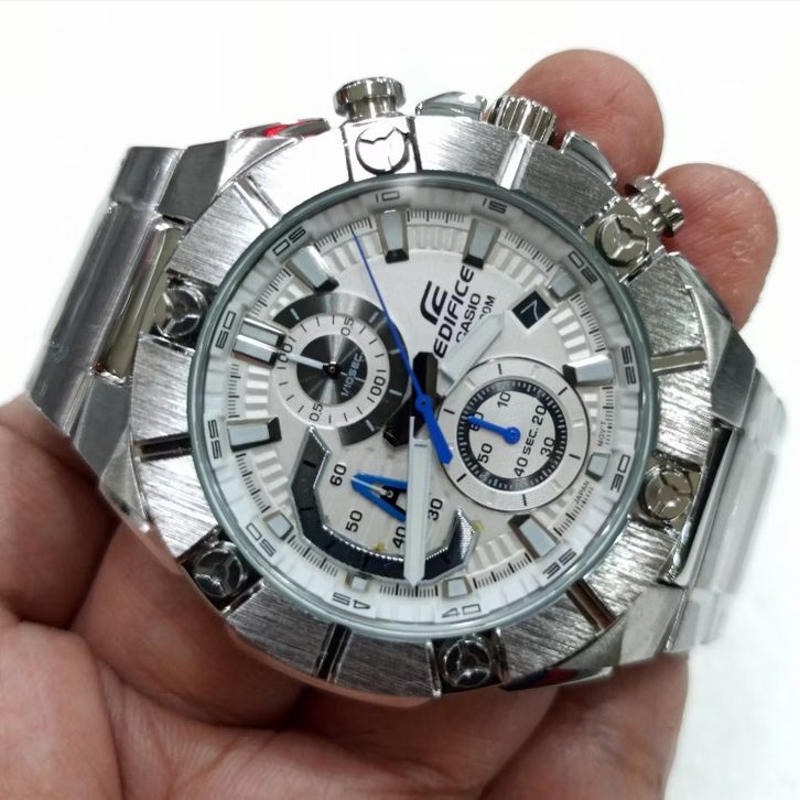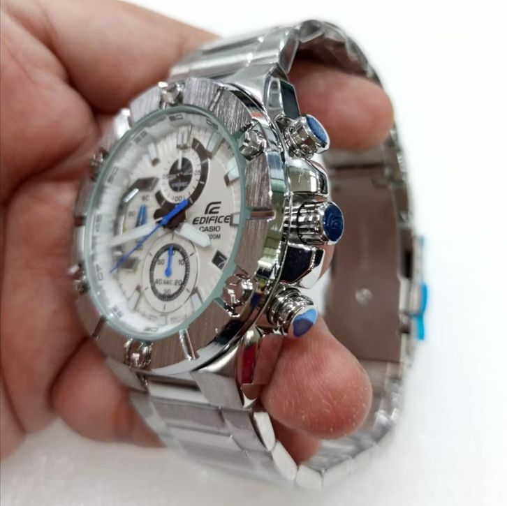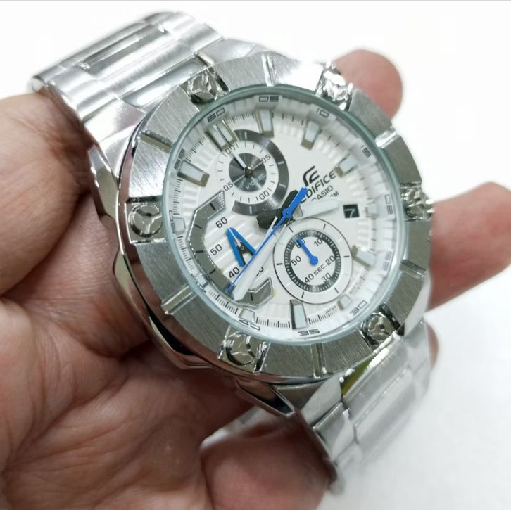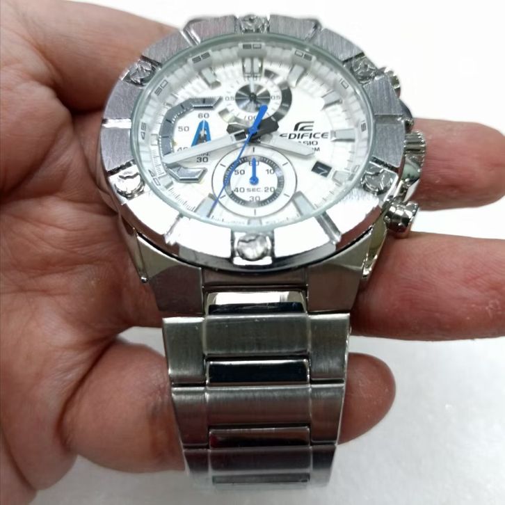 JAM TANGAN PRIA CASIO EDIFICE EFR-569 SILVER DIAL WHITE STAINLESS STEEL ORIGINAL-FREE ONGKIR