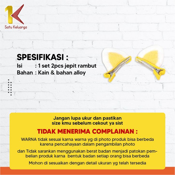 Jepit Rambut Anak 2IN1 Motif Kuping Kucing Lucu Jepitan Rambut Anak Perempuan Cat Hair Pin 1K C322