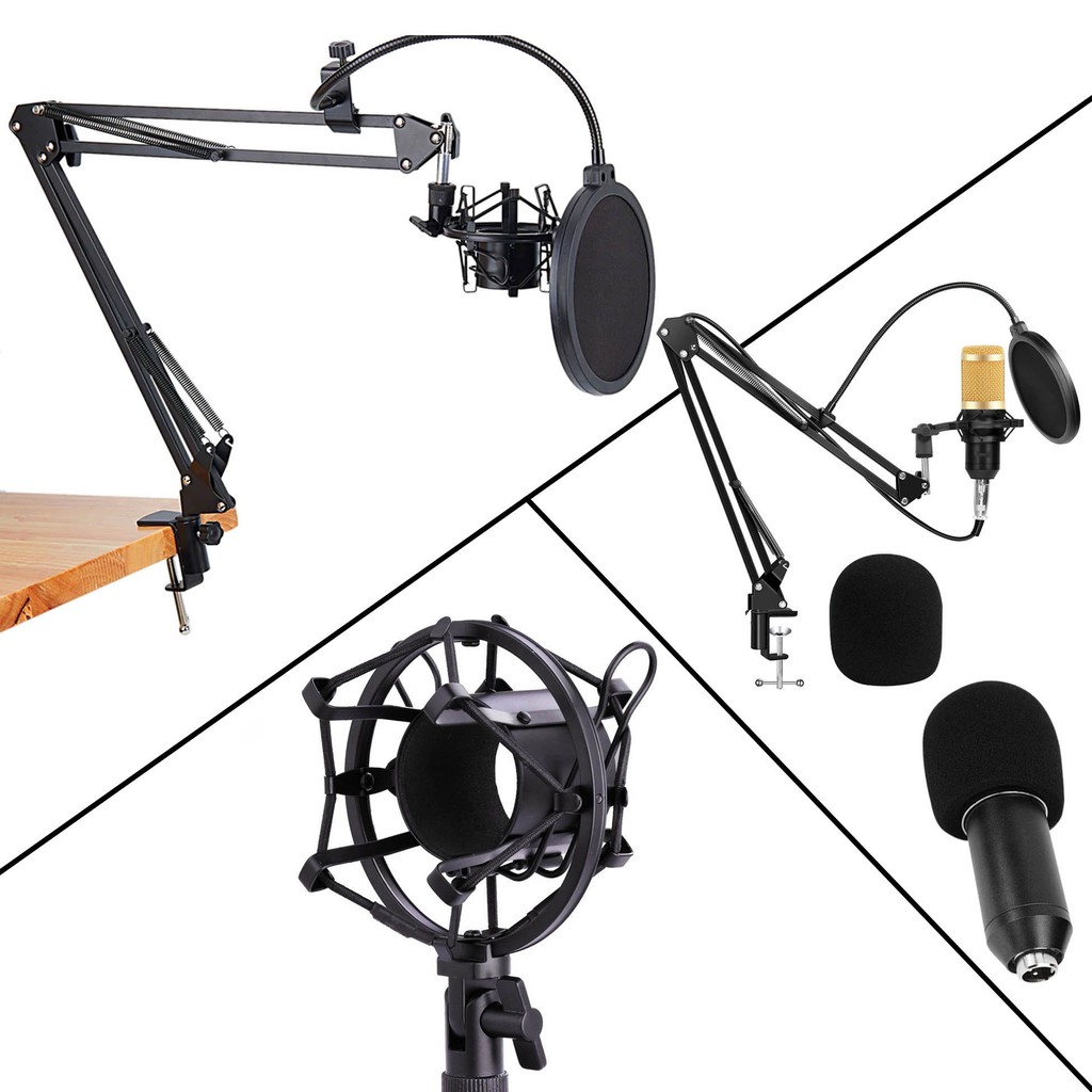 PAKET KARAOKE KUMPLIT MICROPHONE RECORDING CONDENSER BM 800 / BM8000 STAND + SOUNDCARD V8 + FREE AUDIO SPLITTER
