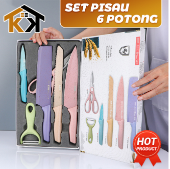Pisau Dapur Set Stainless Knife Anti Lengket Isi 6 Pcs / Peralatan Masak Pisau PREMIUM