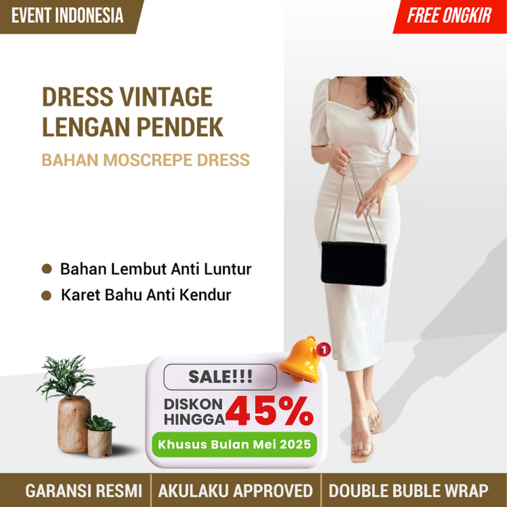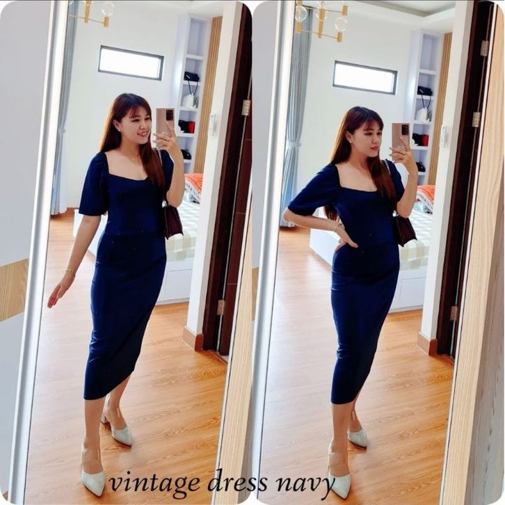 Dress Vintage Bodycon Lengan Pendek Bahan Moscrepe Dress Fashion Cewek Kekinian Model Korean Style