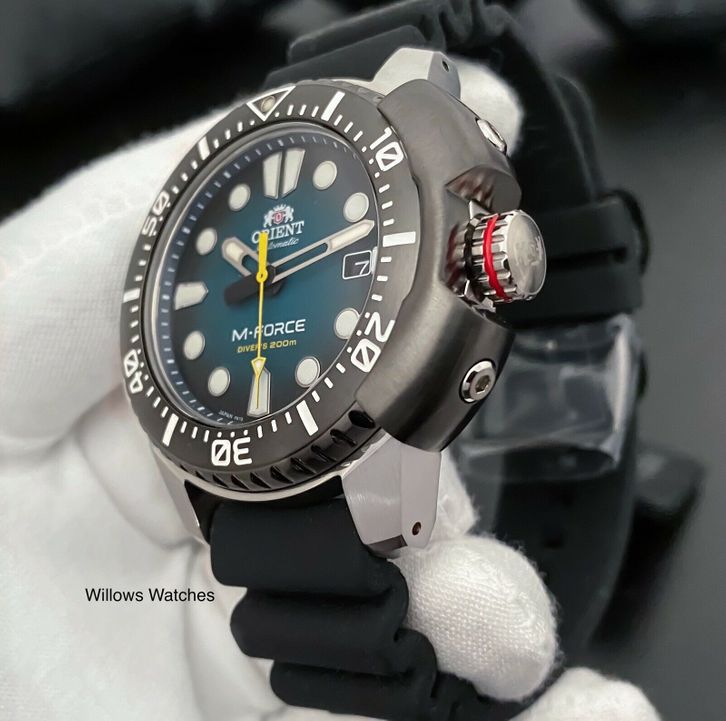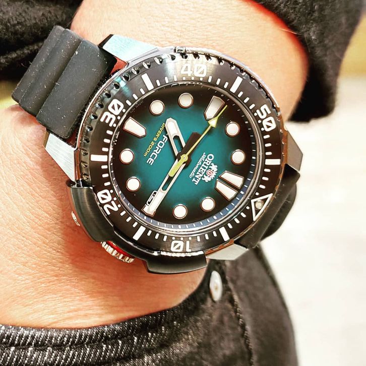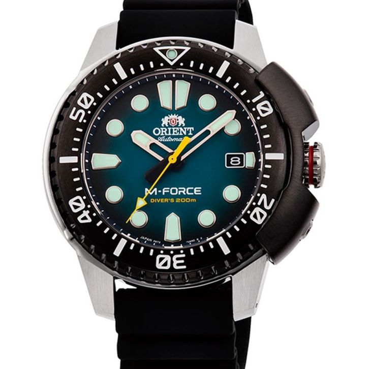 jam tangan pria Orient Automatic M-Force RA-ACL04L00B Diver 200m Green Dial Black Silicone Original garansi resmi