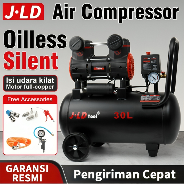 𝗚𝗥𝗔𝗧𝗜𝗦 𝗢𝗡𝗚𝗞𝗜𝗥✅ JLD 1HP 30L Oilless Air Compressor Silent Kompresor Angin Mini Listrik Tanpa Oli Terbaru