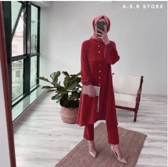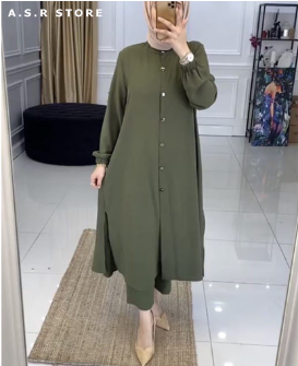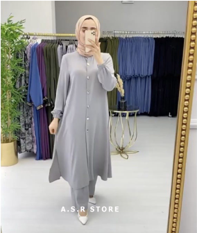 ONE SET GOLDISH DAILY BUSUI WANITA LONG TUNIK SUDAH TERMASUK CELANA BAJU MUSLIM MODEL TERBARU SIZE KUMPLIT S