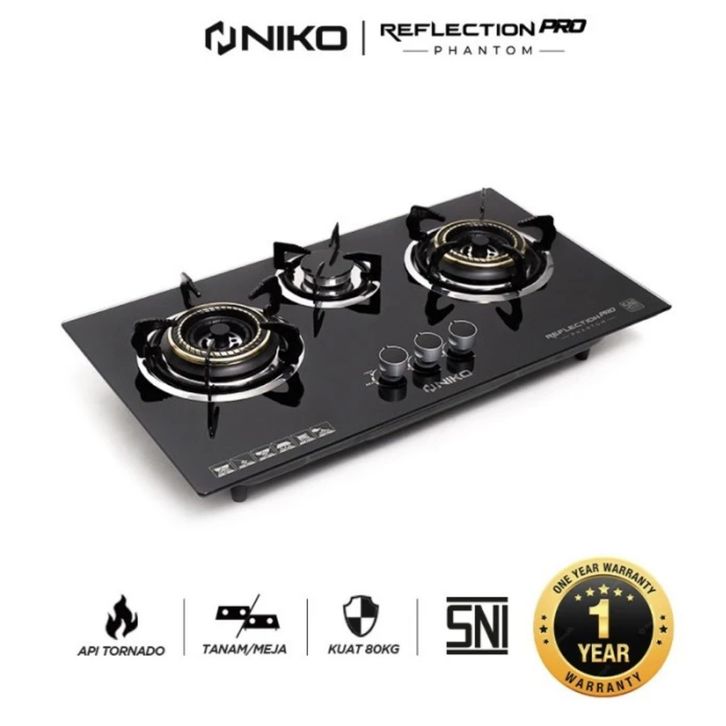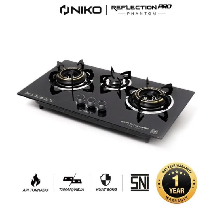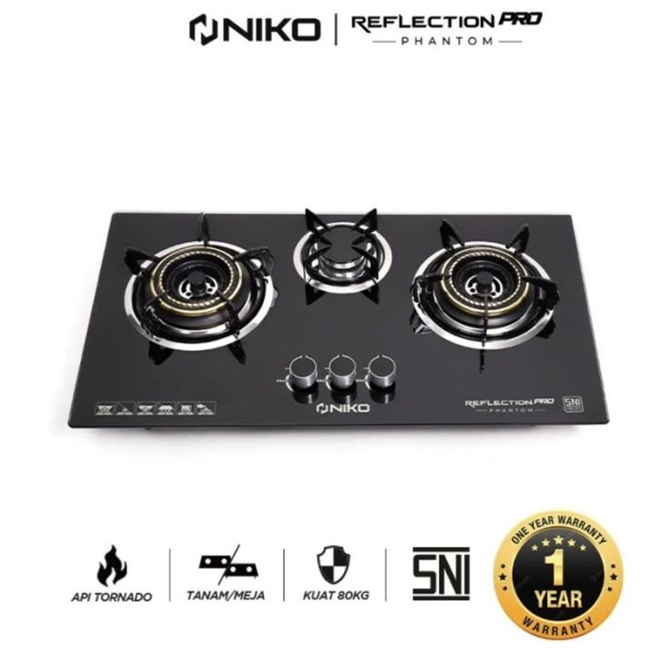 Kompor Gas Kaca 3 Tungku Niko Reflection Pro Phantom Kompor Gas Tanam Dan Di Atas Meja