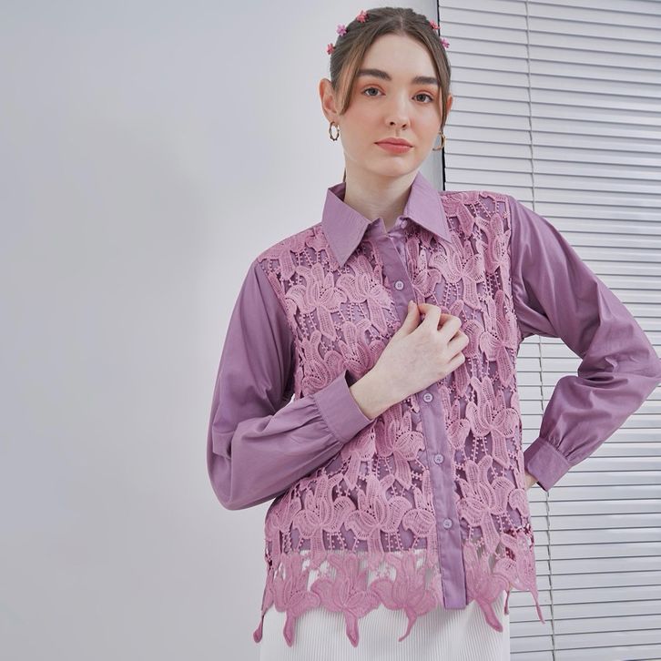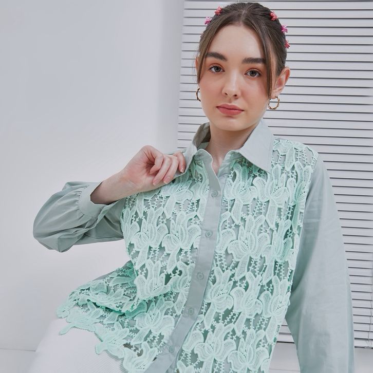 Sumiko Brocade Lace Shirt Atasan Kemeja Brokat Brukat Atasan Kemeja Renda Wanita Kemeja Katun Kombinasi Brokat