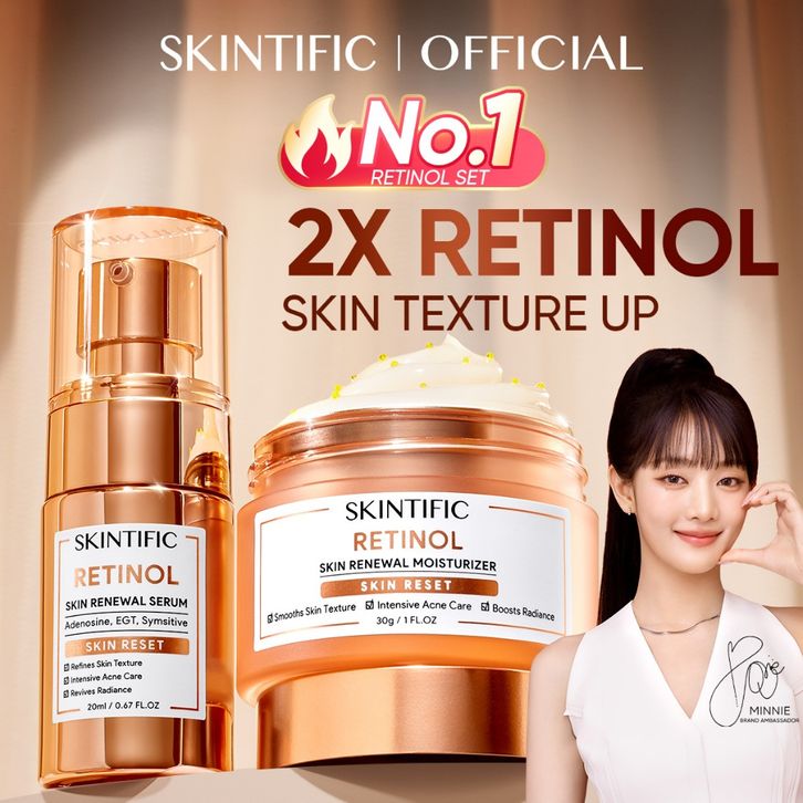 skintific 2pcs paket skincare set retinol skin renewal moisturizer 30g + serum 20ml bpom termurah