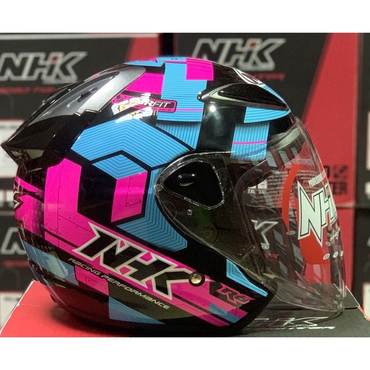 ( GRATIS ONGKIR ) HELM NHK R6 CUBE BLACK BLUE LIGHT PINK HALF FACE SINGLE VISOR - HELEM MOTOR SNI DOT TOURING DEWASA