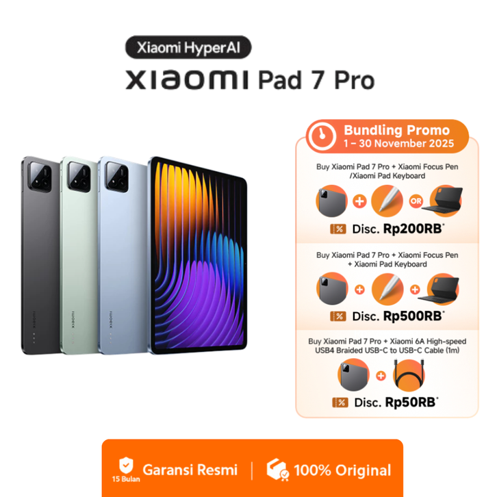 xiaomi pad 7 pro 12/512GB Layar 11.2 3.2K 144Hz Dolby Vision Atmos HyperAI Snapdragon 8S Gen 3 Ultra garansi resmi