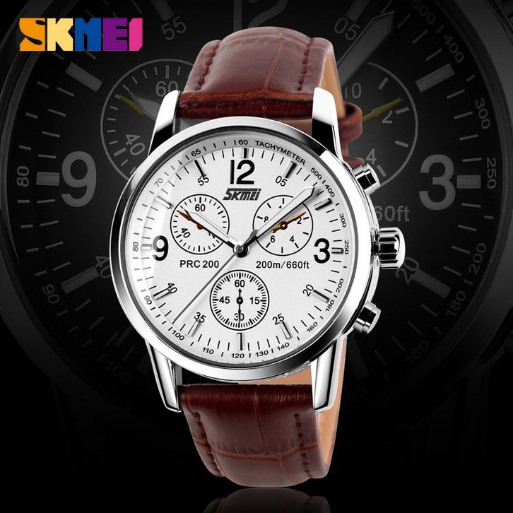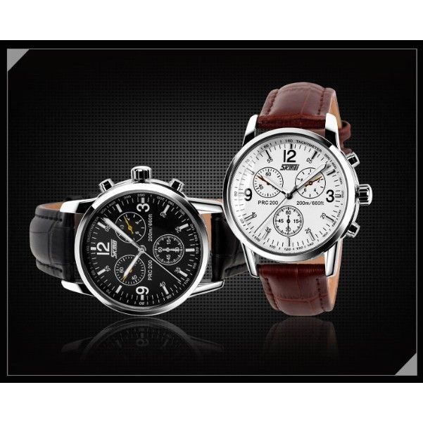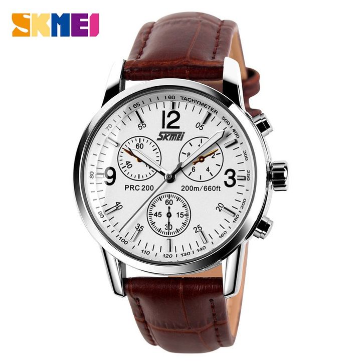 SKMEI 9070L Jam Tangan Pria Analog Tali Kulit WATCHKITE WKOS