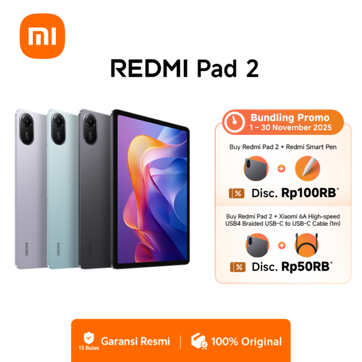redmi pad 2 4/128G Helio G100-Ultra Speaker didukung Dolby Atmos 11" 2.5 Layar Super-jernih Baterai jumbo 9000mAh