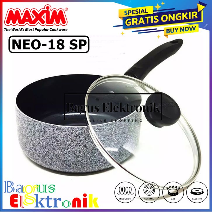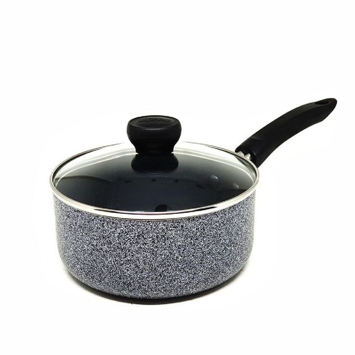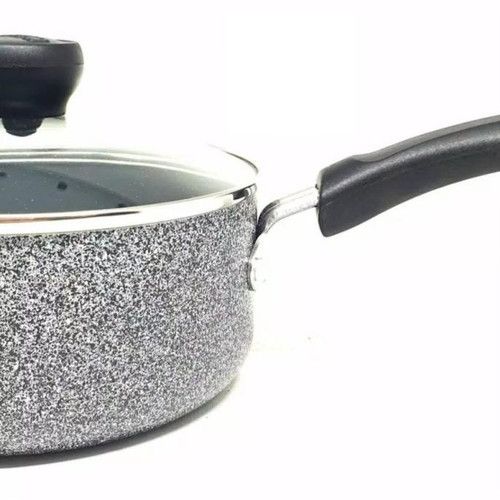 Maxim Neostone Sauce Pan 18 Cm + Glass Cover Keramik Teflon Anti Lengket Diameter 18 cm - Abu-abu