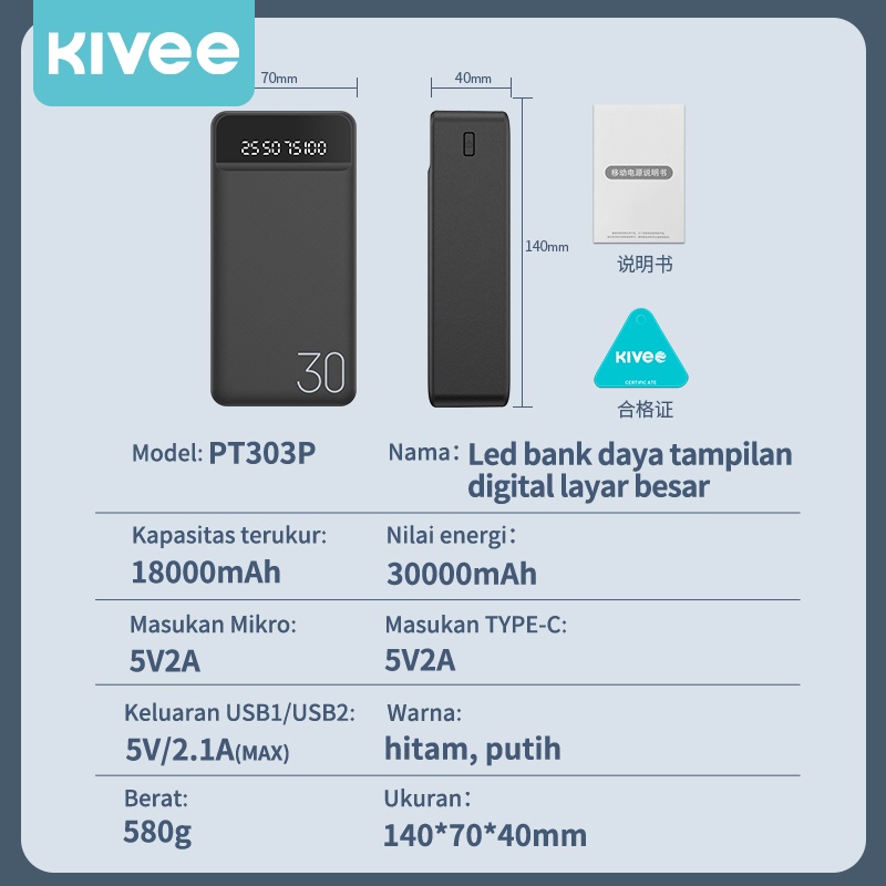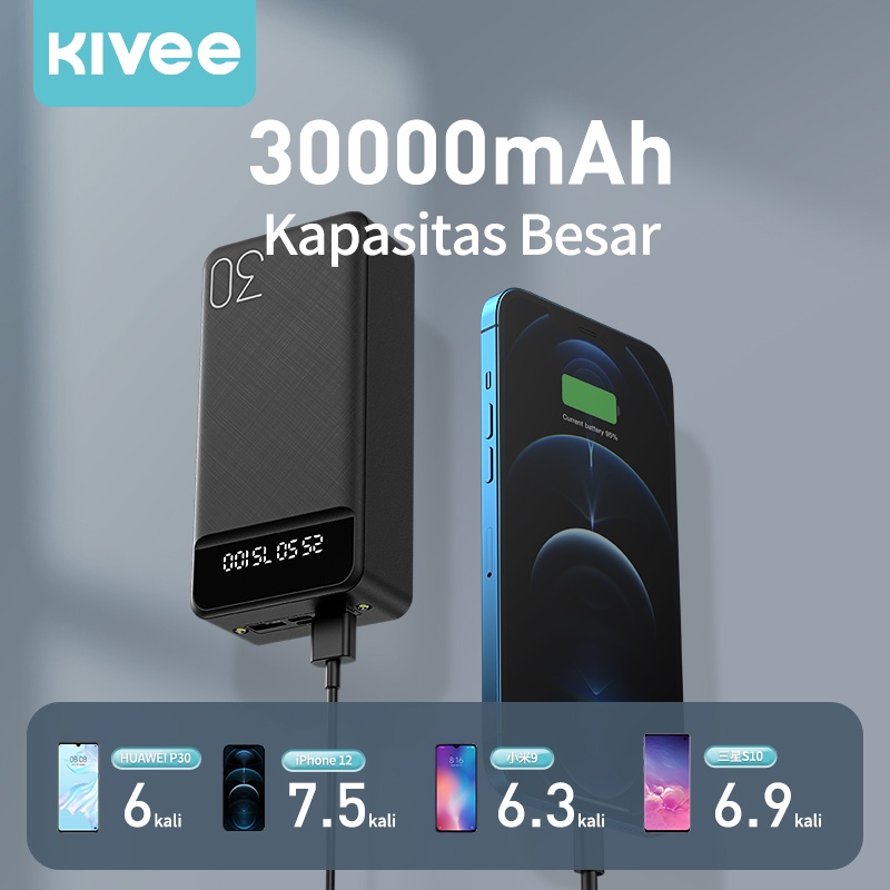 POWERBANK 30000 MAH KIVEE FAST CHARGING WITH KABEL LIGHTNING TYPE C