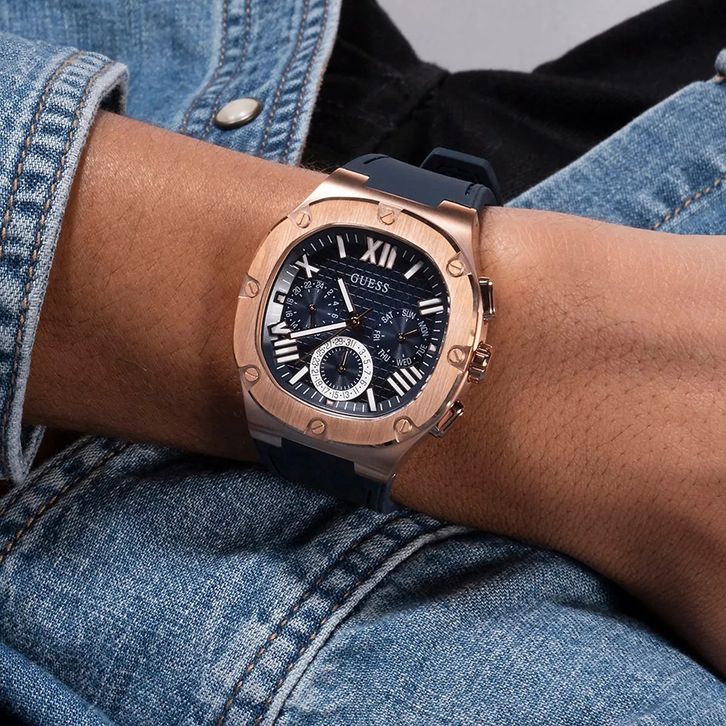 JAM TANGAN PRIA GUESS HEADLINE GW0571G2 ROSEGOLD BLUE RUBBER ORIGINAL-FREE ONGKIR