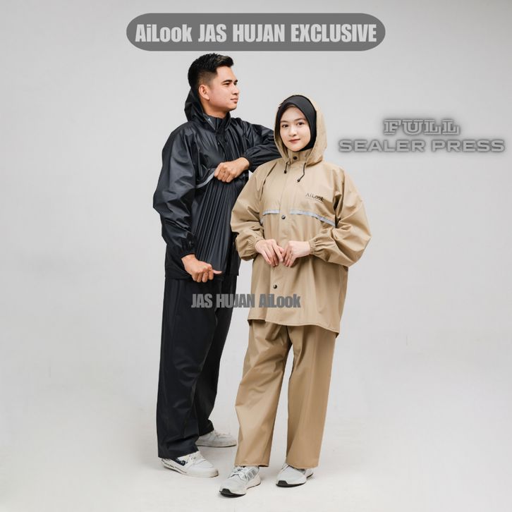 Jas Hujan Raincoat Full Seal Press Anti Rembes Pria Wanita Bahan PVC Karet Tebal Kuat Elastis