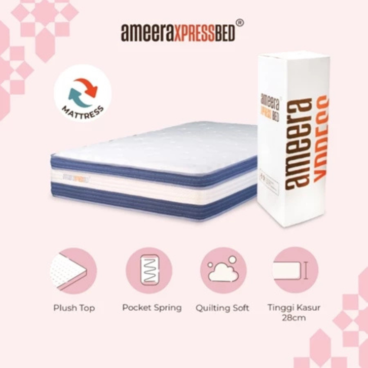 AMEERA XPRESS PLUSH TOP KASUR BUSA SPRINGBED POCKET SPRING UK 200X200 180X200 160X200 140X200 120X200 100X200 90X200 CM