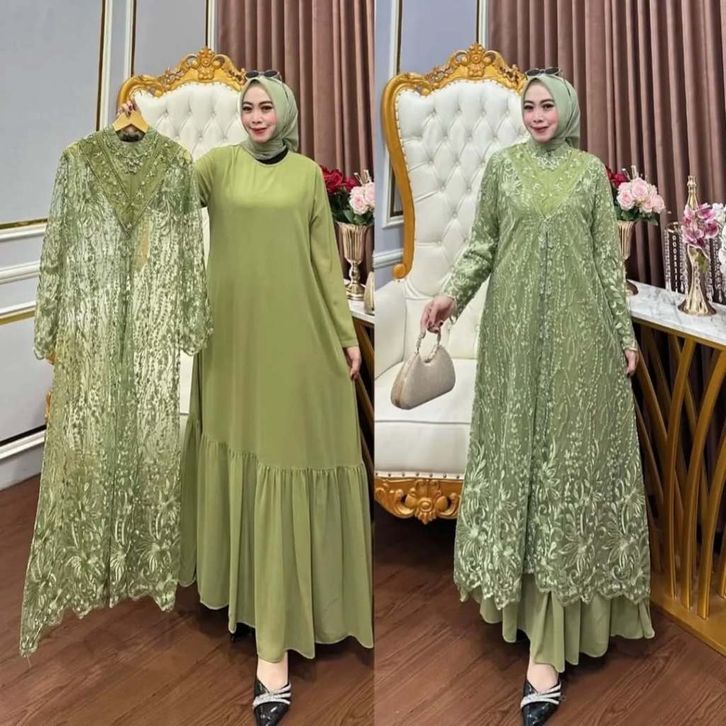 Harumma Set Dress Brukat Ceruty Gamis Lebaran 2026 Model Gamis Terbaru Dress Kondangan