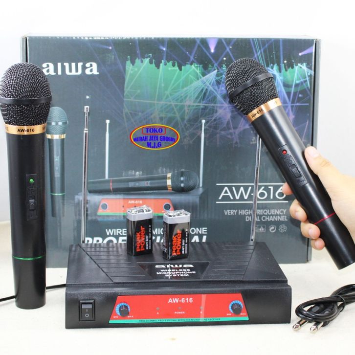Mic Wireless Aiwa AW 616 Microphone Tanpa Kabel 2 Handle Mik Werles