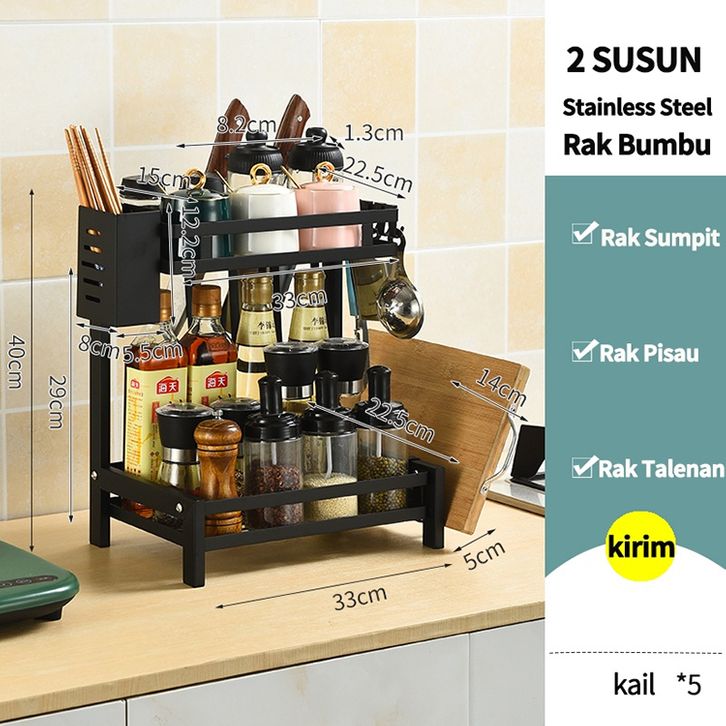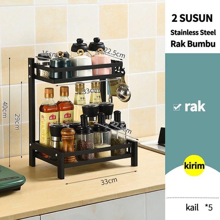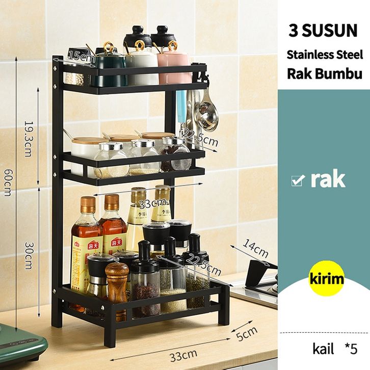 FREE ONGKIR - Rak Bumbu Dapur Rak Rempah Rak Stainless Steel Rak Penyimpanan Bumbu Rak Dapur