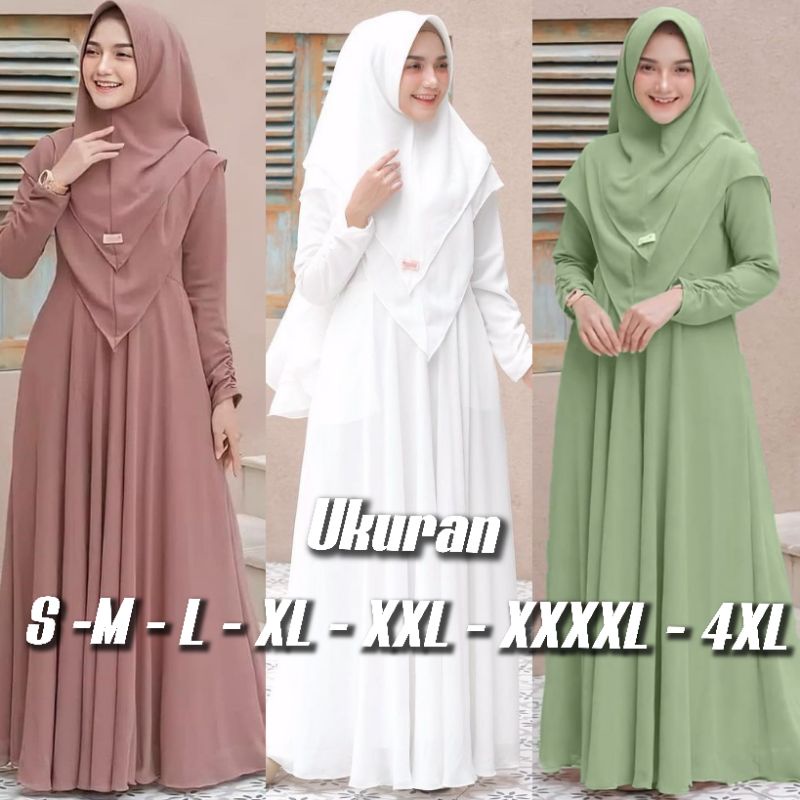 Gamis Syari Plus Jilbab 2 Layer Ukuran S M L XL XXL XXXL 4XL Gamis Set Murah Busui Polos Maxi Dress Pesta Terbaru Jumbo