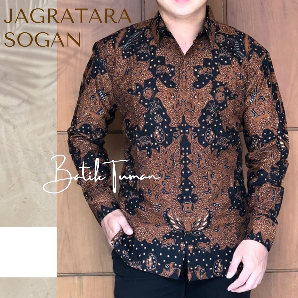 JAGRATARA SOGAN Kemeja Batik Pria Lapis Furing Bahan Katun Primisima Fashion Batik Solo Kemeja Pria Lengan Panjang