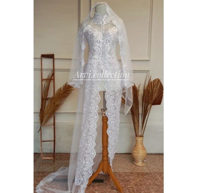 Kebaya Akad Ekor Free Selendang / Gaun Pengantin Akad Baju Akad / Kebaya Akad Ekor / Baju Nikah Gaun Nikah