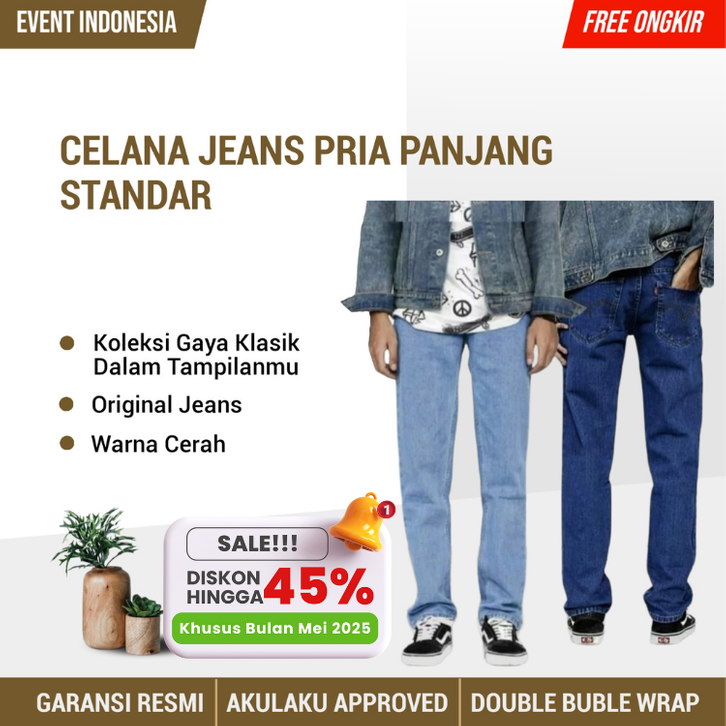 Celana Jeans Cowok Panjang Standar Jeans Celana Jeans Denim Tidak Melar Atau Ngaret Fashion Cowok Regular Kekinian