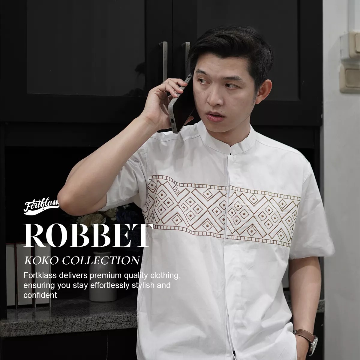 [Star] FortKlass ROBBET Baju Koko Pria Dewasa Terbaru Bordir Kemeja Polos Pria Lengan Pendek Regular Fit Muslim 2026