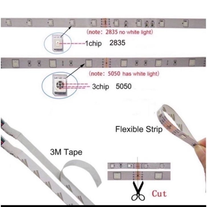 Lampu led strip RGB warna warni ip44 2835 3528 komplit set adaptor remote