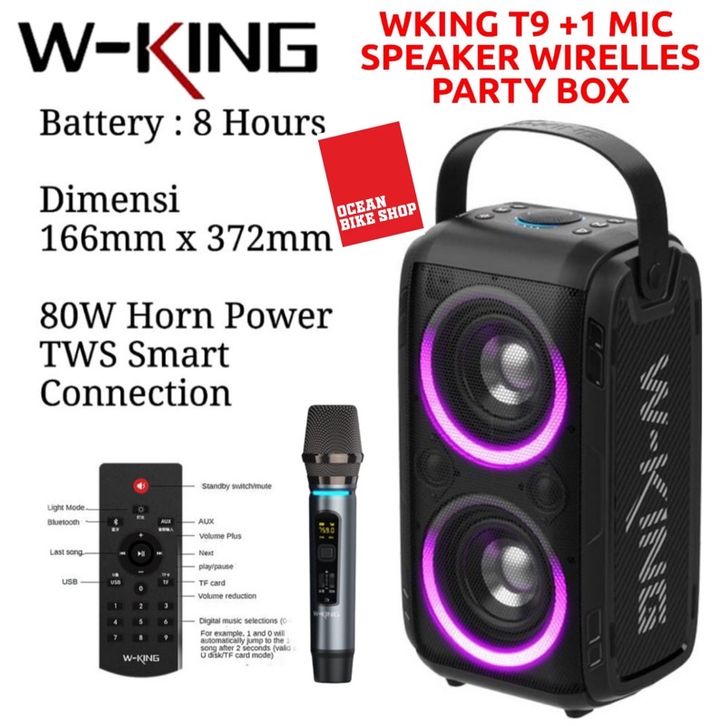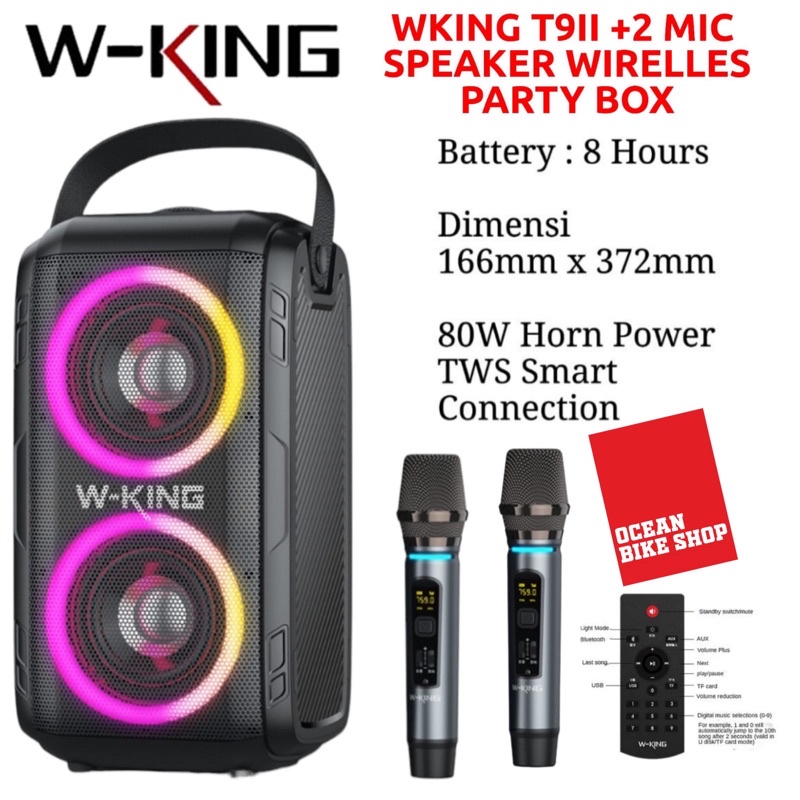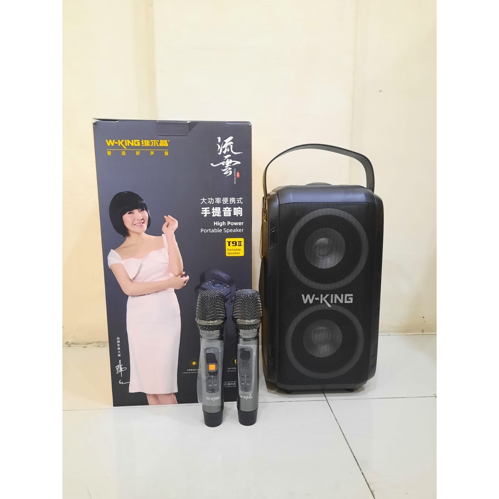 Speaker Karaoke Portable Bluetooth Wireless Traveling T9 T9ii + 2 MIC WKING speker karoke party Box Speaker W-KING Baru