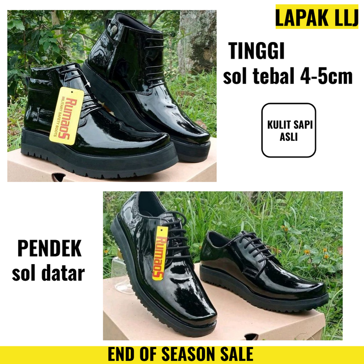 SEPATU PDH PRIA RUMAOS SOL DATAR KULIT SAPI ASLI HITAM KILAP TNI POLRI SECURITY SATPAM ORIGINAL FREE ONGKIR