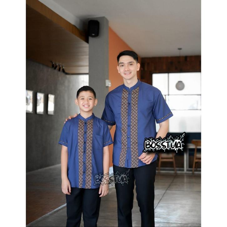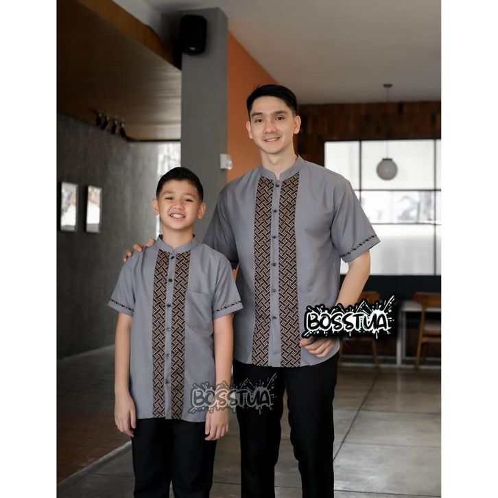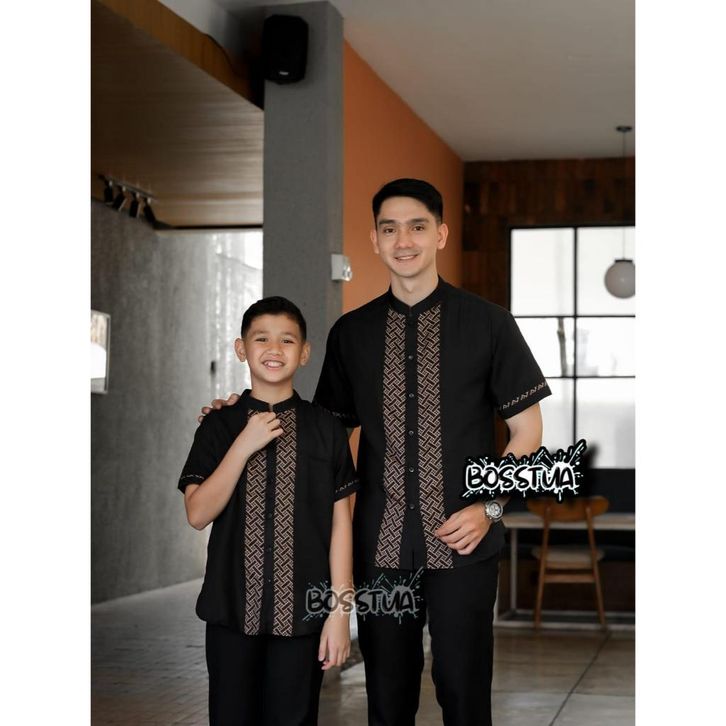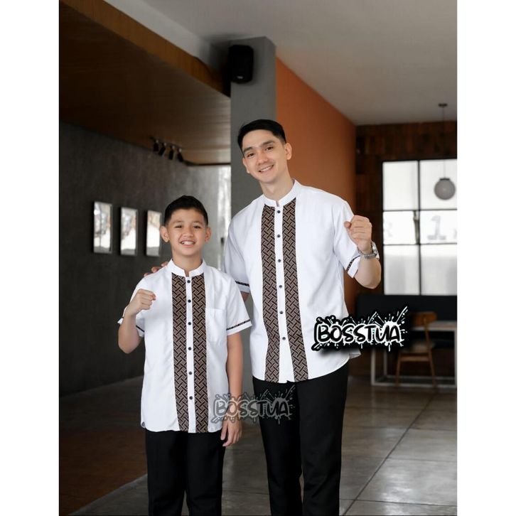 Baju Koko Couple Ayah dan Anak Kombinasi Lengan Pendek Muslim Baju Koko Anak Laki laki Dan Baju Koko Pria Dewasa