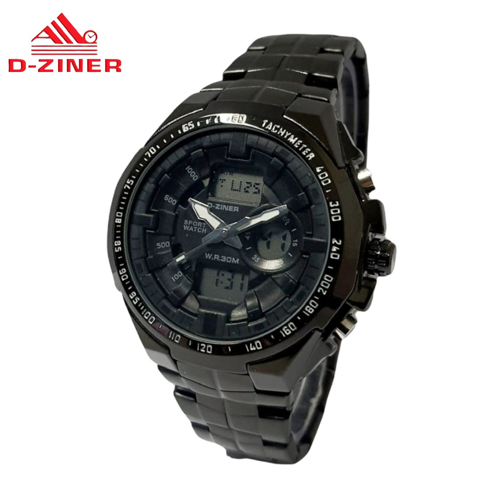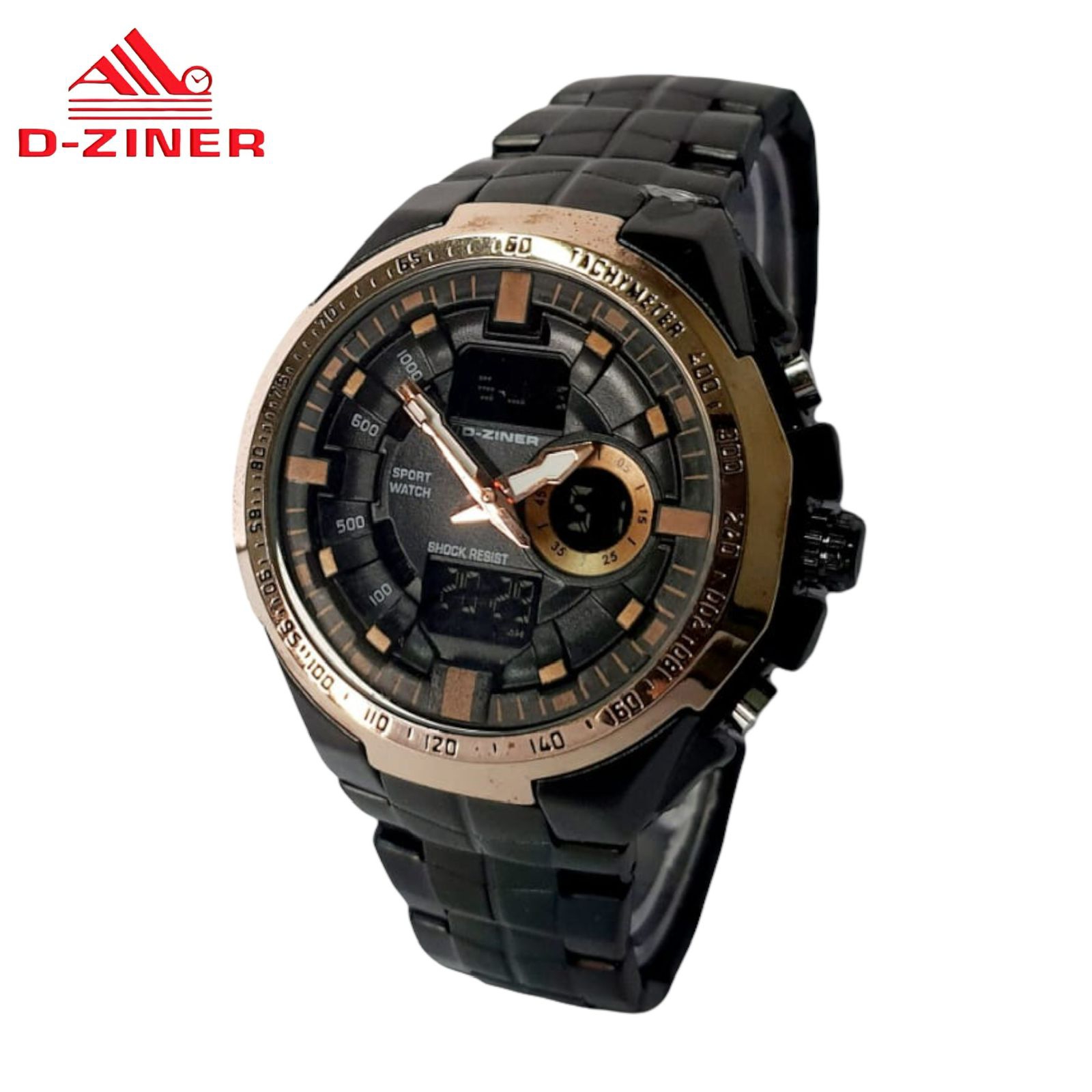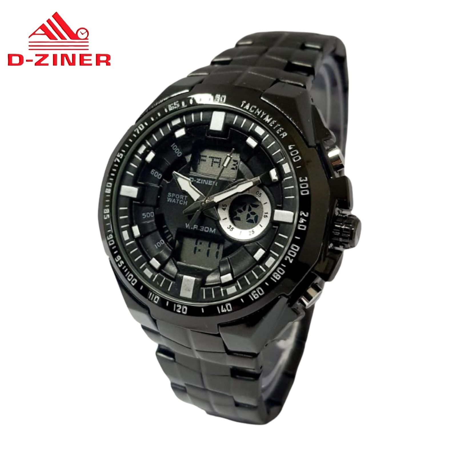 JAM TANGAN PRIA DZINER 8023 RANTAI HITAM STAENLESS STELL