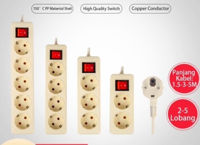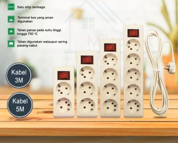 STOP KONTAK + KABEL 2,3,4,5 LUBANG 3/5 METER SNI / TERMINAL LISTRIK