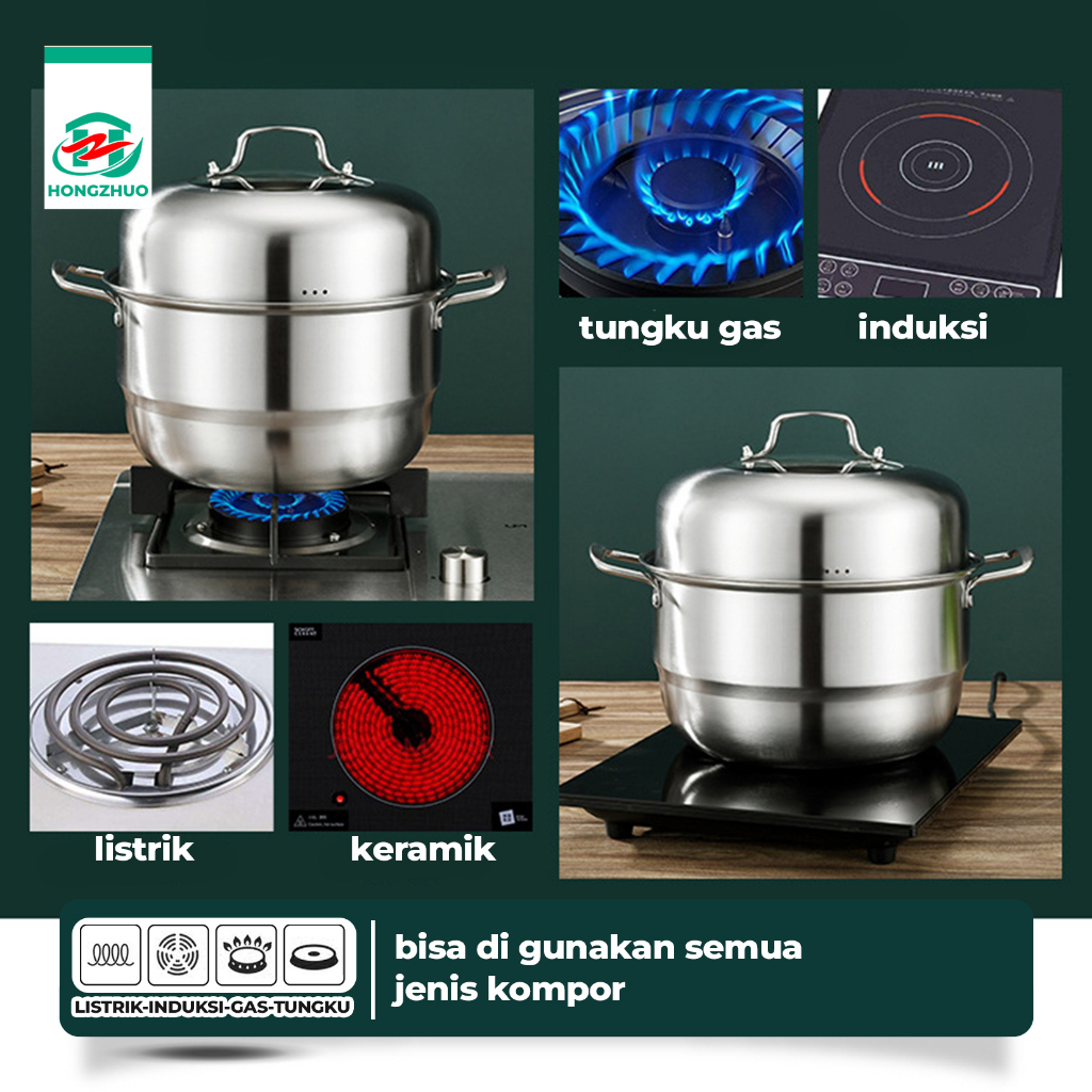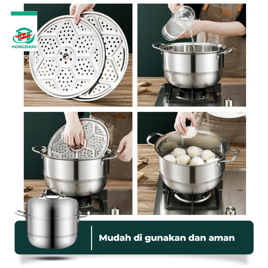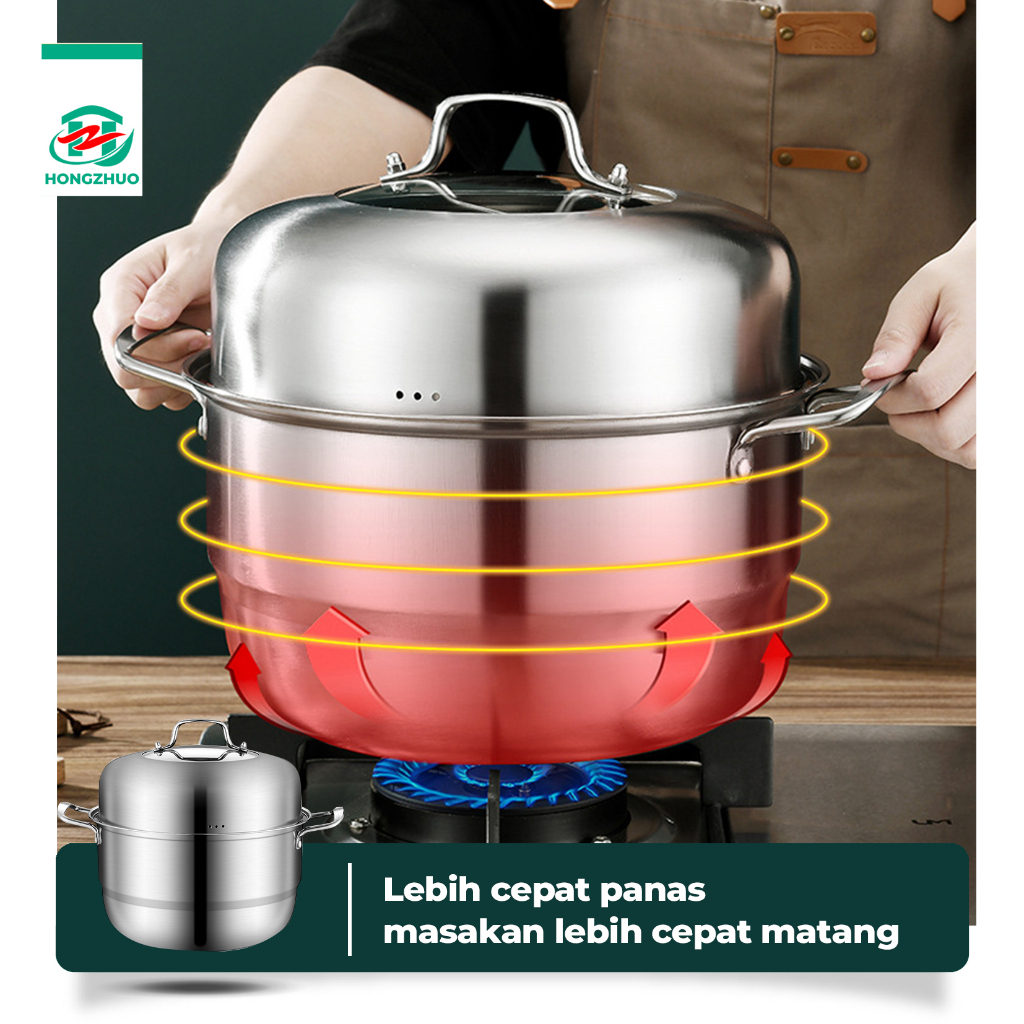 Hongzhuo Panci Steamer 1 Tingkat Kukusan Stainless Steel Panci Multifungsi Peralatan Dapur