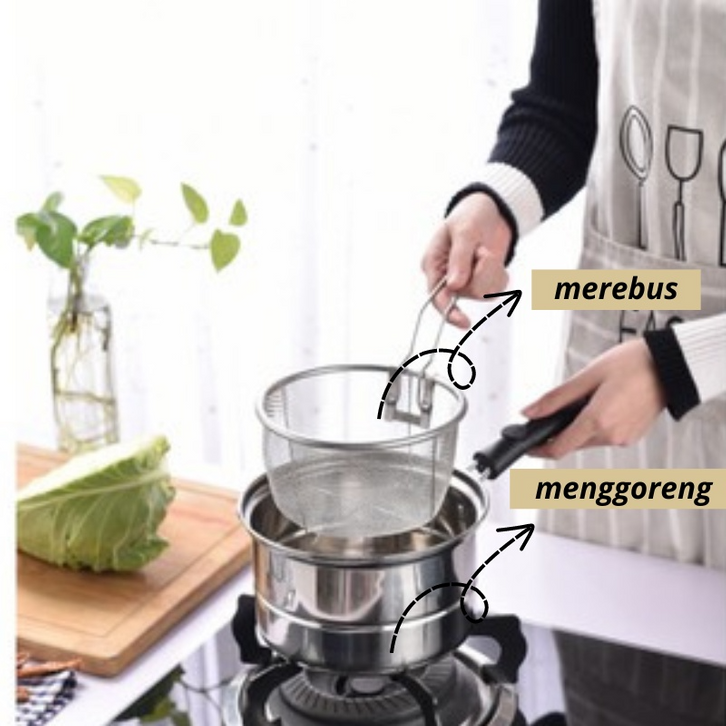 Panci Set Deep Fry Panci Indomie Stainless Steel Panci Saringan Mie Multifungsi Steamer Serbaguna
