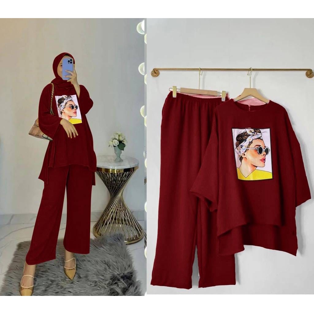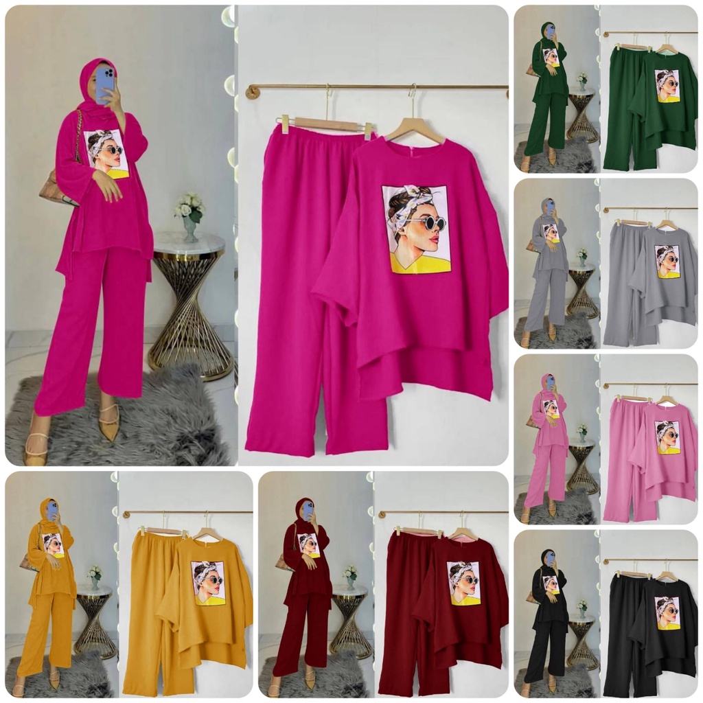 ALONA PRINTING SETELAN WANITA MUSLIMAH TERBARU / STELAN BAJU VIRAL SLEBEW /BAJU SETELAN WANITA BAHAN BABYTERRY