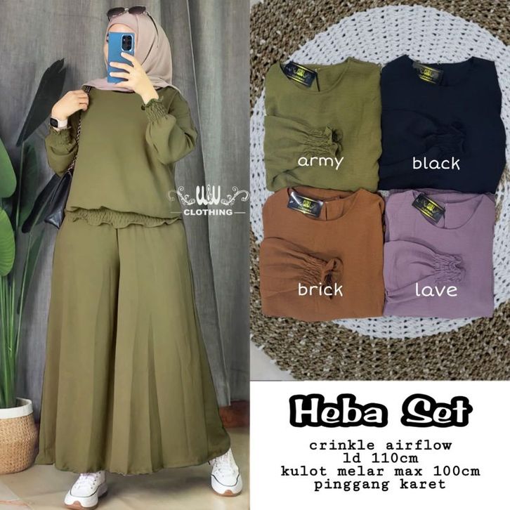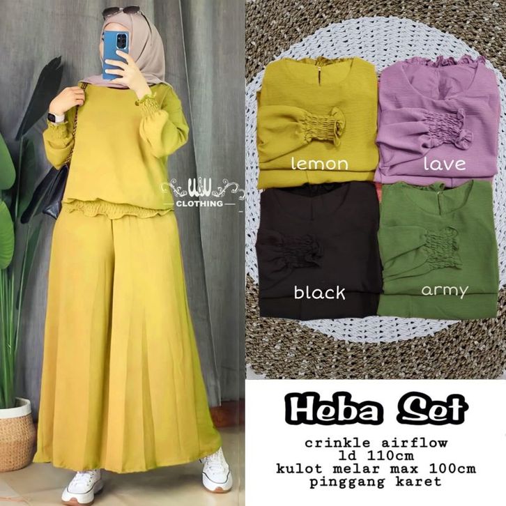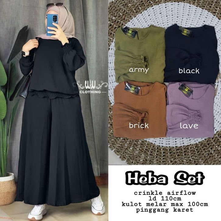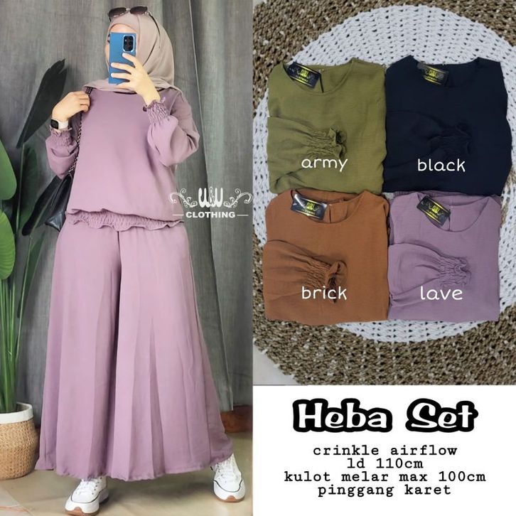 Baju Setelan Wanita Murah Heba Set Celana Kulot Crinkle Airflow By W&W Clothing