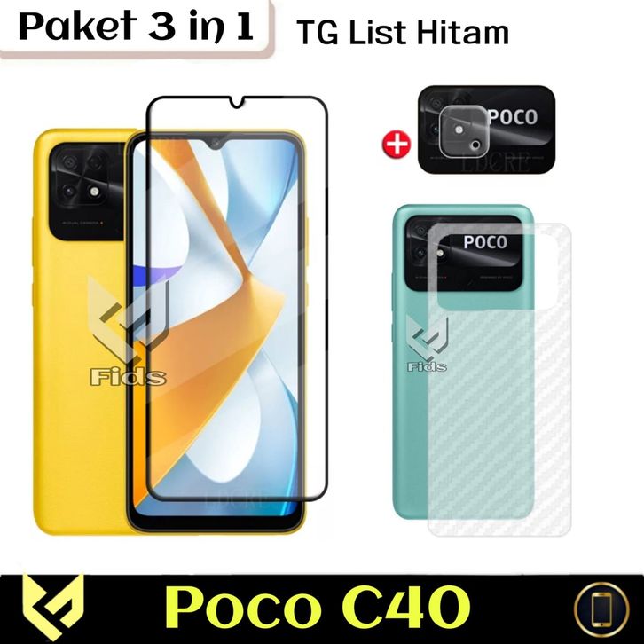 NEW PROMO Paket 3IN1 Screen Guard For XIAOMI POCO C40 Anti Gores Layar Free Lens Camera Belakang & Skin Carbon Anti Gor