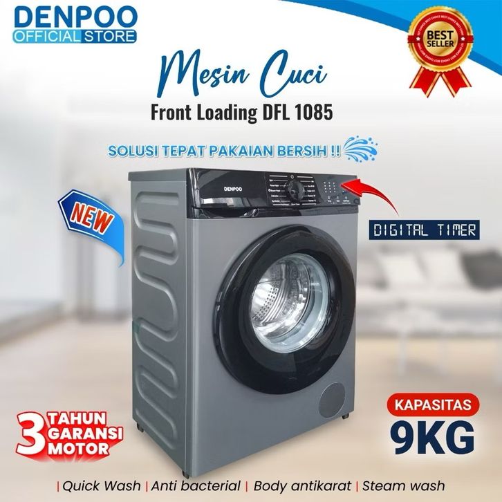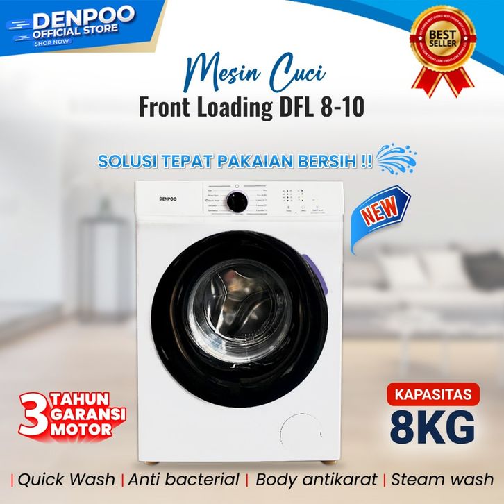 MESIN CUCI DENPOO FRONT LOADING 1 TABUNG 9KG 8KG DFL 1085 810 PINTU BUKAAN DEPAN MURAH TERBARU 9 8 KG