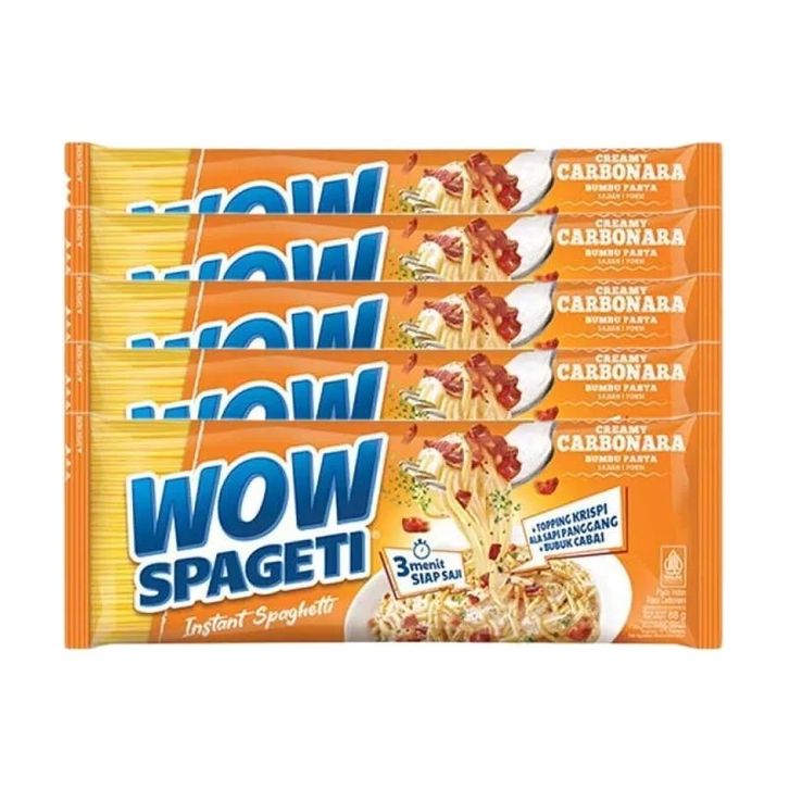 WOW SPAGETI CREAMY CARBONARA MEATY BOLOGNESE BUMBU PASTA MI KUAH INSTANT SPAGHETTI MAYORA BUMBU PASTA TOPPING SOSIS BUBU