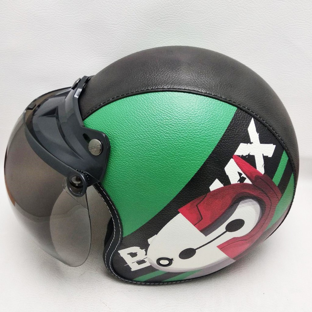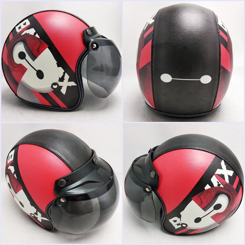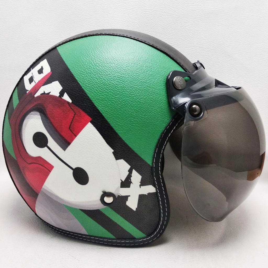 HELM RETRO BOGO KULIT MOTIF BAYMAX KACA BUBBLE HALFFACE