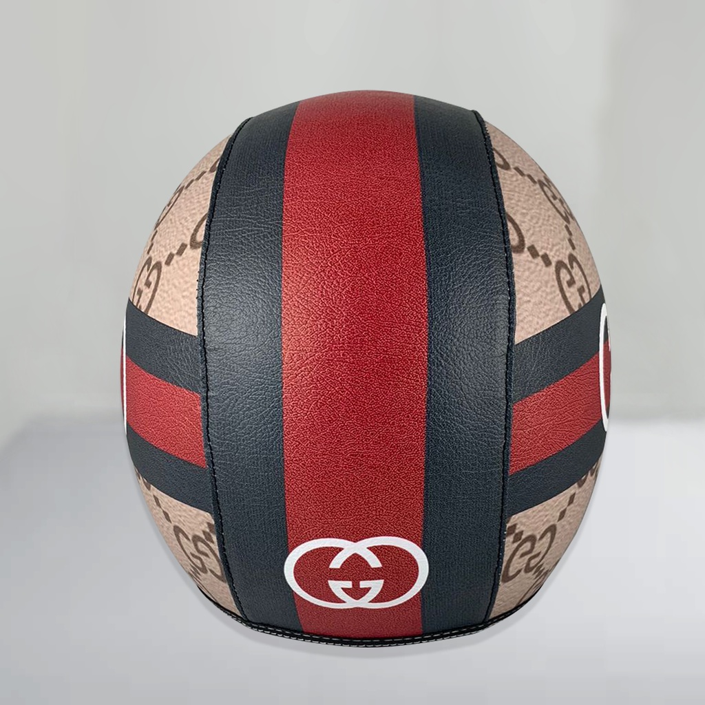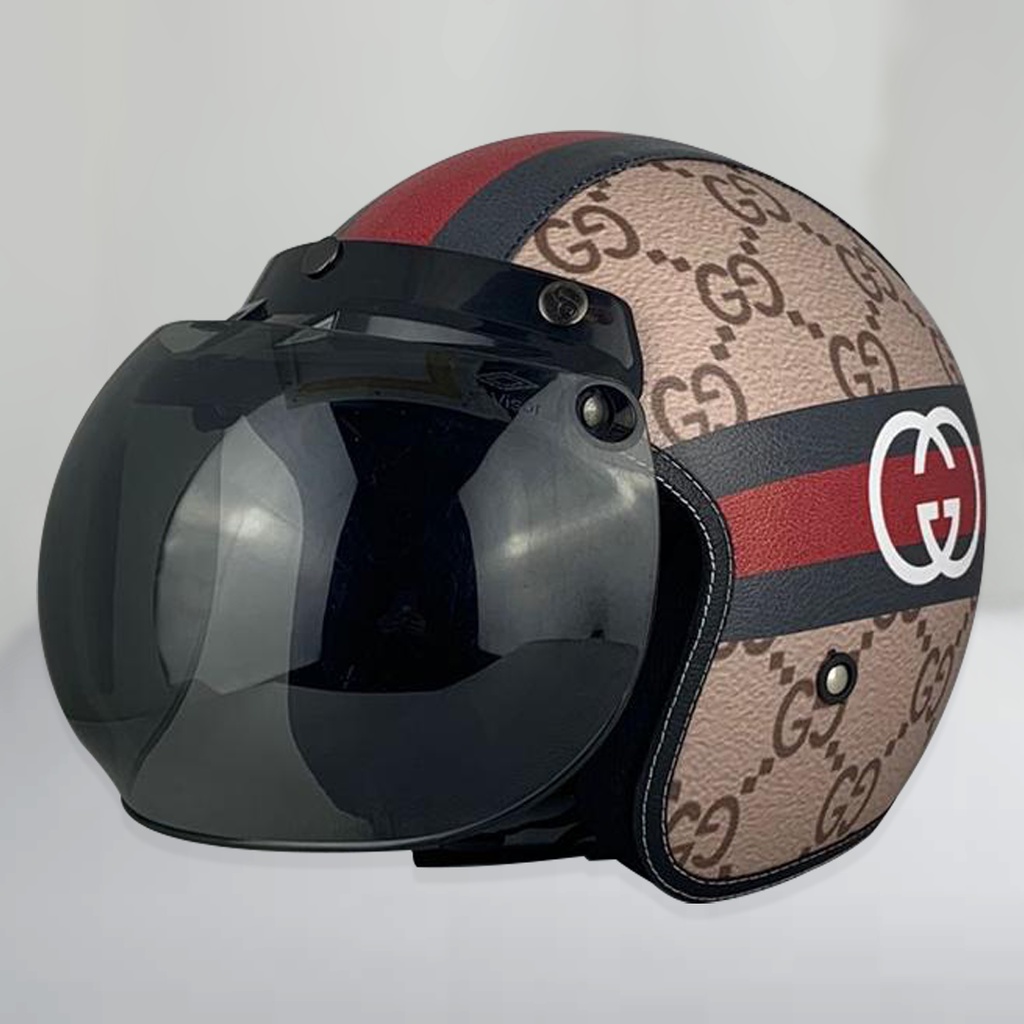 HELM RETRO BOGO KULIT MOTIF GUCCI LIST HIJAU KACA BUBBLE HALFFACE