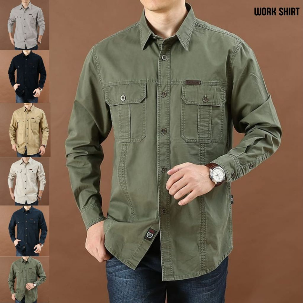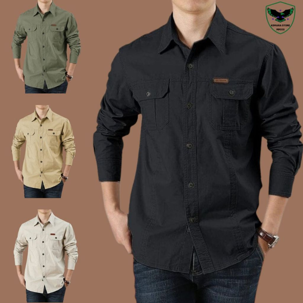 Kemeja lapangan polos panjang pria/kemeja kantoran casual premium streat style