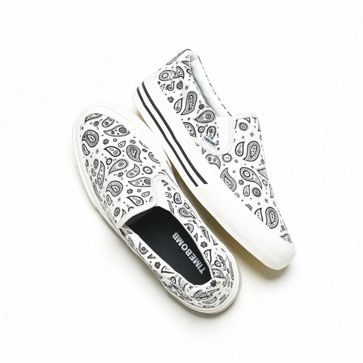 GRATIS ONGKIR SEPATU TIMEBOMB VULCANIZED | SLIP ON PAISLEY WHITE STRIPE